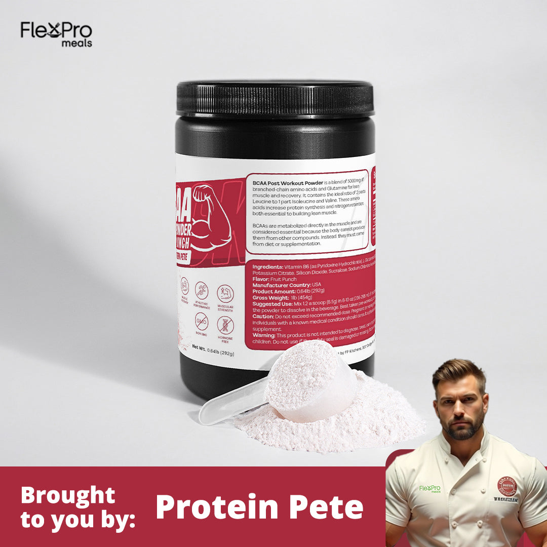 Ingredients: Vitamin B6 (as Pyridoxine Hydrochloride), L-Glutamine, BCAA 2:1:1, Citric Acid, Fruit Punch flavor, Potassium Citrate, Silicon Dioxide, Sucralose, Sodium Chloride, Acesulfame Potassium, FD&C Red #40 Powder.